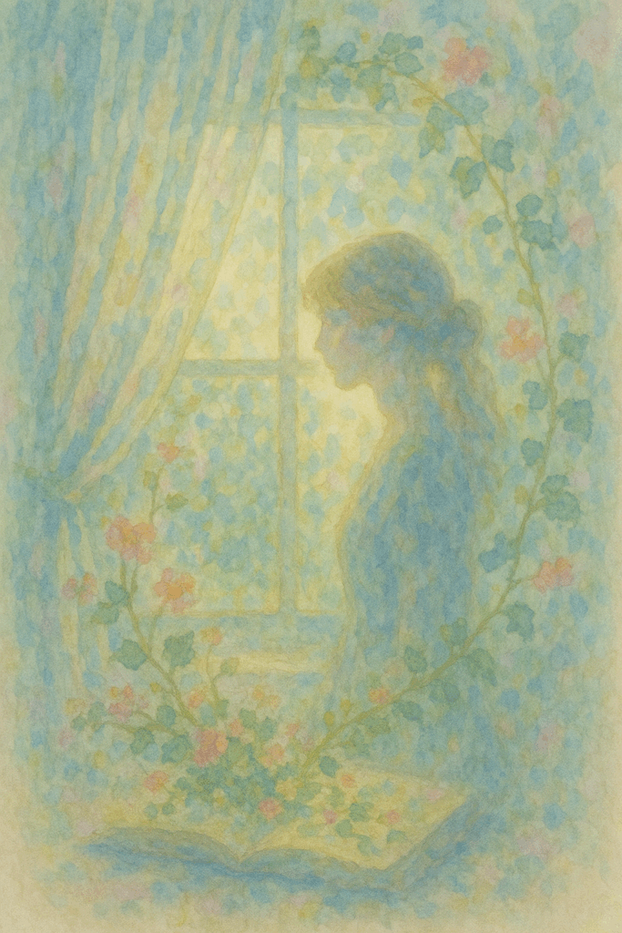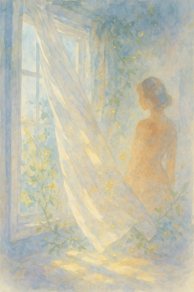 風に揺れるカーテンの奥、光の中に浮かぶひとつの影。