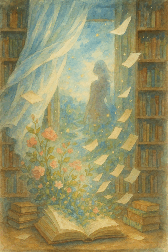 A soft watercolor portrait where wind and light reveal the shape of an invisible heart.
